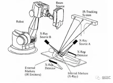 目前主要是賽博刀(Cyber knife)系統(tǒng)在使用這種方式,當(dāng)然也有在以前的不具備IGRT功能的常規(guī)加速器系統(tǒng)中增加這樣一套定位系統(tǒng)的,例如江蘇瑞爾醫(yī)療科技公司就主要從事類(lèi)似的雙X線圖像引導(dǎo)系統(tǒng)的研制和安裝使用,并取得了不錯(cuò)的反響。