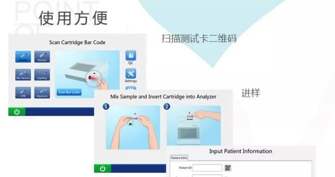 但是現(xiàn)在,使用POCT診斷設(shè)備,在病人的身邊就能直接抽血化驗,2-3分鐘可得出檢測結(jié)果,醫(yī)生當(dāng)場根據(jù)結(jié)果制定治療方案。