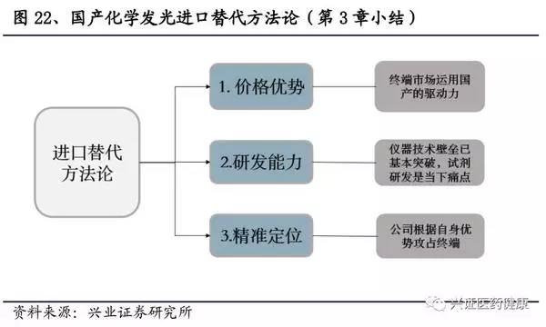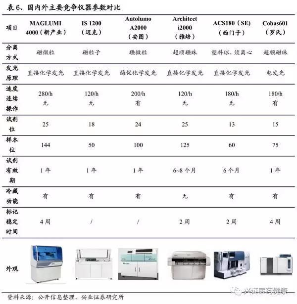 從以上進程可看出,技術到位、價格優(yōu)勢以及找準市場切入口是其完成進口替代的關鍵。發(fā)光行業(yè)與生化行業(yè)有其區(qū)別,發(fā)光本質為免疫反應,各廠家的技術平臺完全不同,為保證結果的準確性和穩(wěn)定性,將迫使檢驗人員使用同一廠家提供的試劑和分析儀。在各大醫(yī)院對于各個項目的檢查都基本專機專用,未來也很難將其開放化。所以,在發(fā)光的進口替代進程中,試劑和儀器的一體化研發(fā)是必須的。國內化學發(fā)光龍頭企業(yè),例如,新產業(yè)、安圖生物、邁克生物等都具備試劑和儀器的一體化研發(fā)能力。參考生化的替代道路,5年內將爆發(fā)大規(guī)模進口替代。
