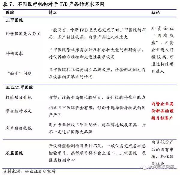 在進口替代的進程中,應先分析終端的需求情況,以找準定位,獲得收益。醫(yī)院在選用儀器的時候,主要有技術偏好和價格偏好,不同級別的醫(yī)院考慮的優(yōu)先度會有所不同,所以對其分類討論以找準市場至關重要。