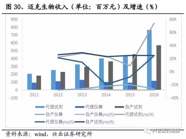 2、近幾年儀器的研發(fā)壁壘已基本突破,儀器性能已與進口相當,試劑的種類業(yè)已較為豐富,在穩(wěn)定性進一步提高之后,將迅速放量。